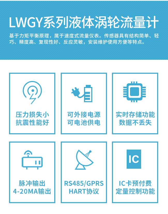 LWGY機油燃油流量計可采用管道式、卡箍式、螺紋式連接,可輸出電流信號,可實現遠傳功能,可帶RS485通訊,電池供電和電源供電兩種供電方式可選擇,功能強大,測量穩定,使用壽命長。傳感器具有結構簡單、輕巧、精度高、復現性好、反應靈敏,安裝維護使用方便等特點。