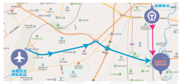 機場至展館: 乘坐地鐵10號線(新平-太平園)雙流機場2航站樓上車-太平園B口下車, 步行360米,換成84路,武陽大道三段上車-新會展中心北側下車,步行52 米到達。